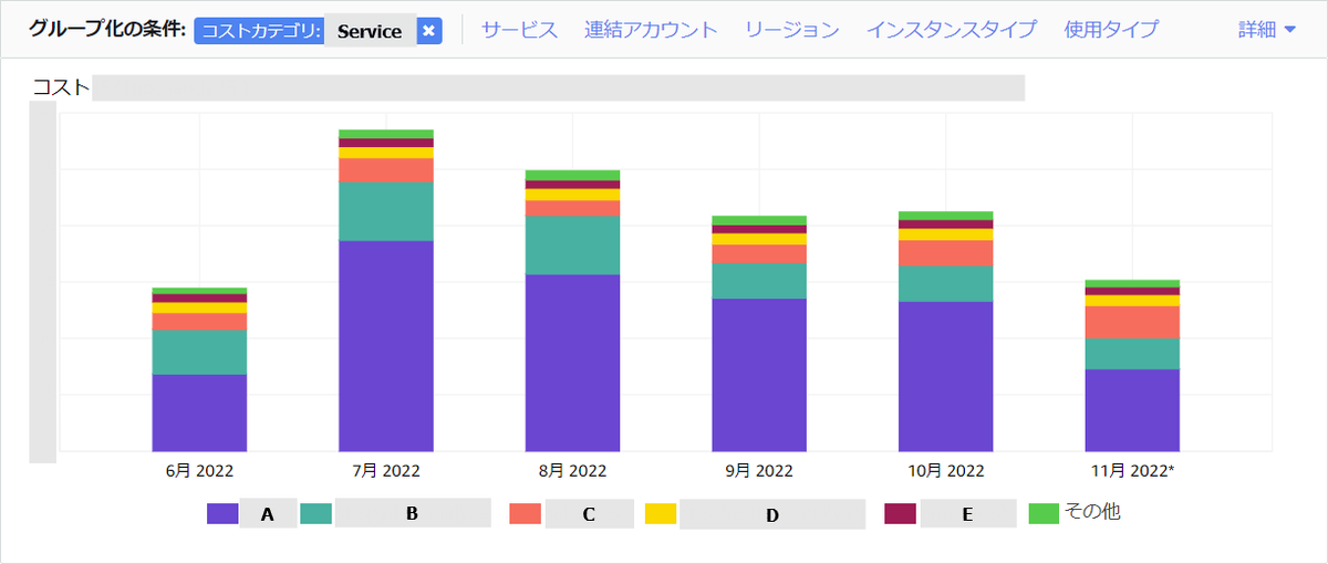 - アカウントA のうち、コスト配分タグ