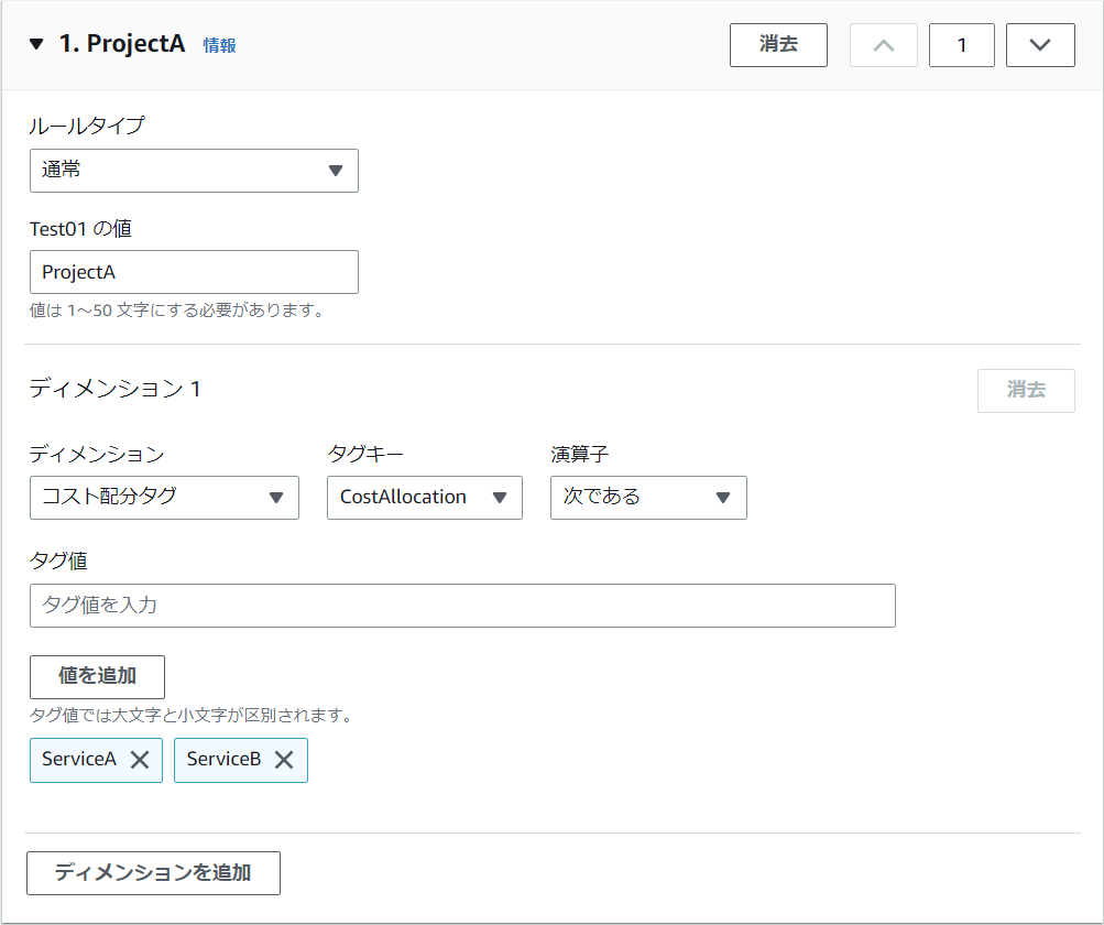 ルールで指定するディメンションですが、Cost Explorer のものとは異なるようです。