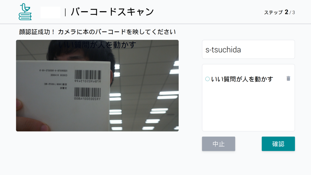 - 顔認証および書籍のバーコードスキャンを用いた書籍の貸出・返却