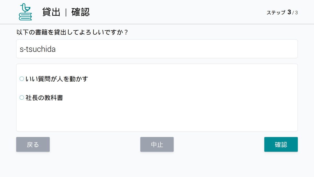 顔認証と書籍のバーコードスキャンをした後は貸出・返却ボタンをクリックして貸出・返却処理を行います。貸出・返却処理が完了するとNotionのデータベースが更新されます。